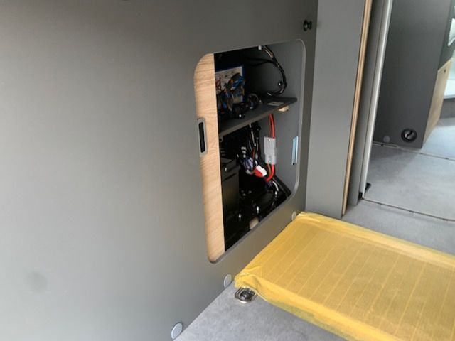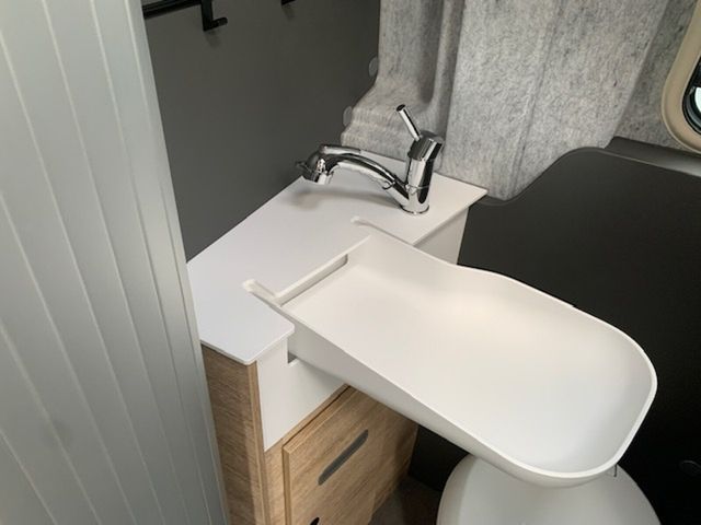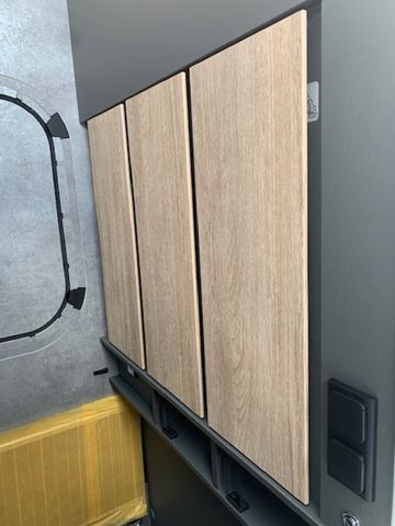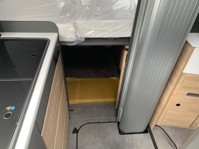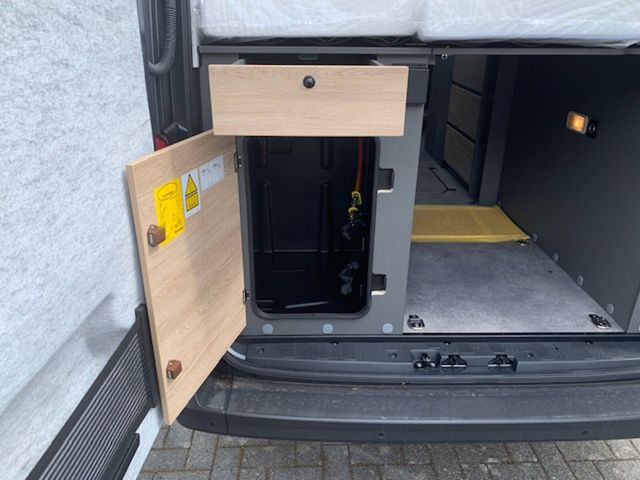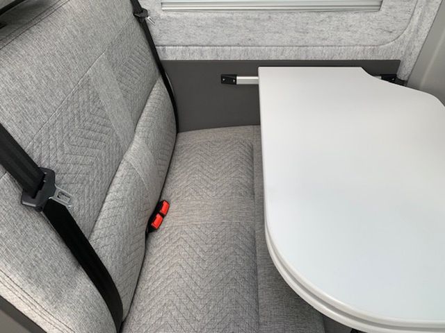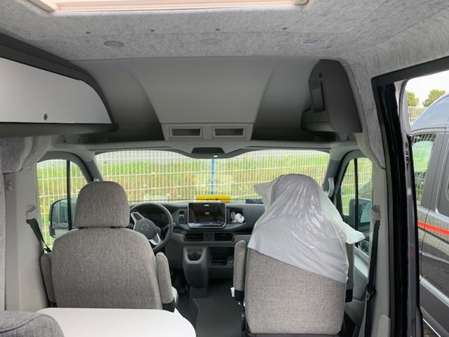 Modell 2024, Motor / Chassis: VW Crafter 2,0-l-TDI SCR, Leistung: 120 kW / 163 PS, Getriebe: Automatik, zul. Gesamtgewicht: 3500 kg, Bett(en): Doppelbett, Polster: Scandi, Holzdekor: Amberes Oak