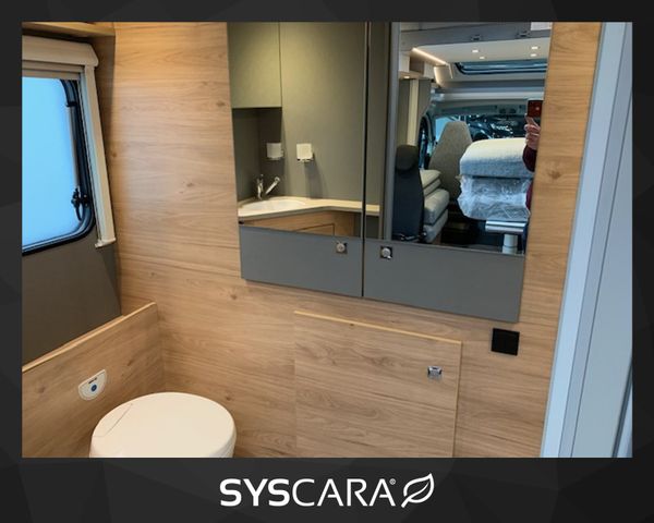 Modell 2025, Motor / Chassis: Fiat Ducato 140 MultiJet 3, Leistung: 103 kW / 140 PS, Getriebe: Automatik, zul. Gesamtgewicht: 3499 kg, Bett(en): Hubbett, Polster: Drake, Holzdekor: Noce Nagano