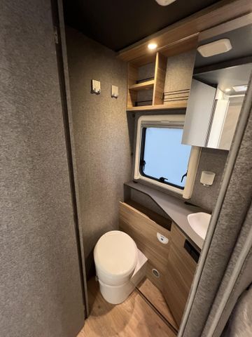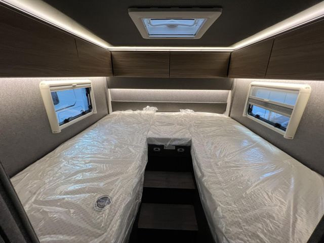 Modell 2025, Motor / Chassis: Fiat Ducato 140 MultiJet 3, Leistung: 132 kW / 180 PS, Getriebe: Automatik, zul. Gesamtgewicht: 4250 kg, Bett(en): Hubbett, Einzelbetten, Polster: Saros, Holzdekor: Serie Trend