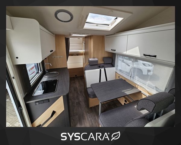 Modell 2025, Motor / Chassis: Citroen Jumper 2.2 Blue HDi, Leistung: 103 kW / 140 PS, Getriebe: Schaltgetriebe, zul. Gesamtgewicht: 3500 kg, Bett(en): Alkoven, Etagenbetten, Polster: Performance Grey, Holzdekor: Serie