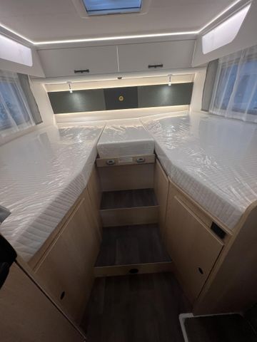 Modell 2025, Motor / Chassis: Citroen Jumper 2.2 Blue HDi, Leistung: 103 kW / 140 PS, Getriebe: Automatik, zul. Gesamtgewicht: 3500 kg, Bett(en): Hubbett, Einzelbetten