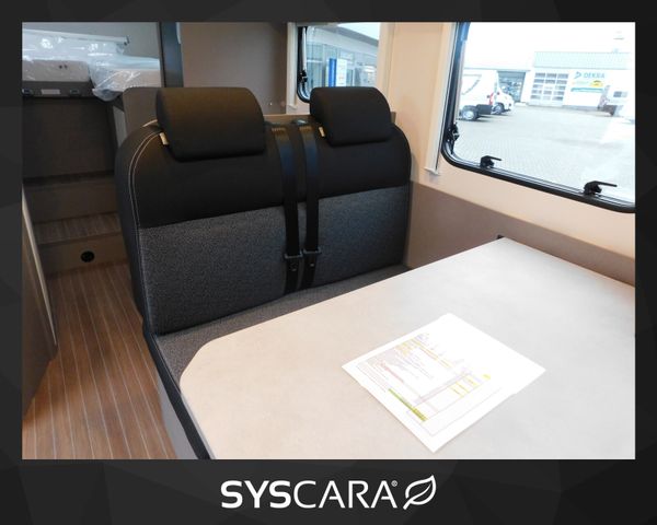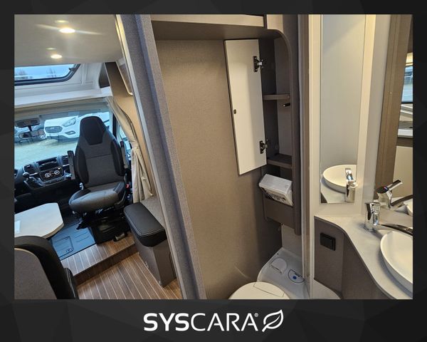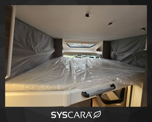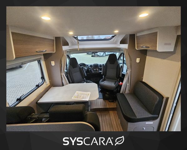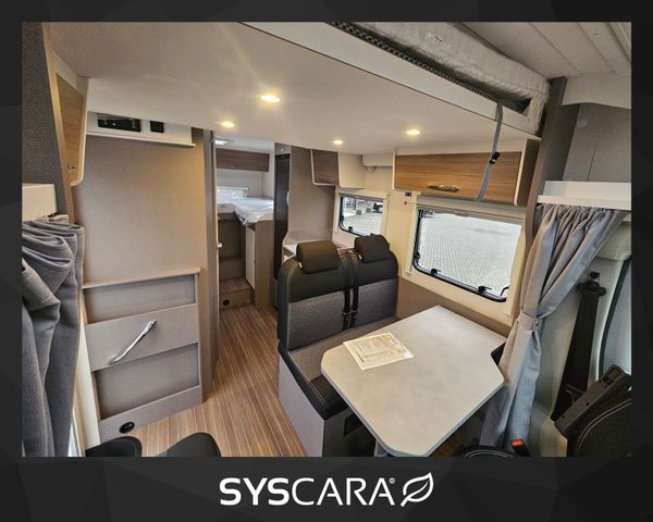 Modell 2025, Motor / Chassis: Fiat Ducato 2,2l Mjet, Leistung: 103 kW / 140 PS, Getriebe: Schaltgetriebe, Kilometerstand: 50 km, zul. Gesamtgewicht: 3500 kg, Bett(en): Hubbett, Einzelbetten, Sitzgruppe: Seitensitzgruppe, Polster: sicilia, Holzdekor: Serie