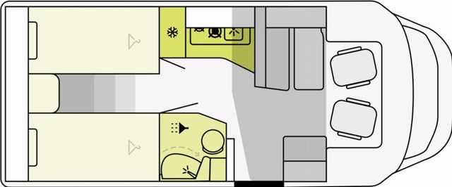 Seitensitzgruppe, WC, Festbett,