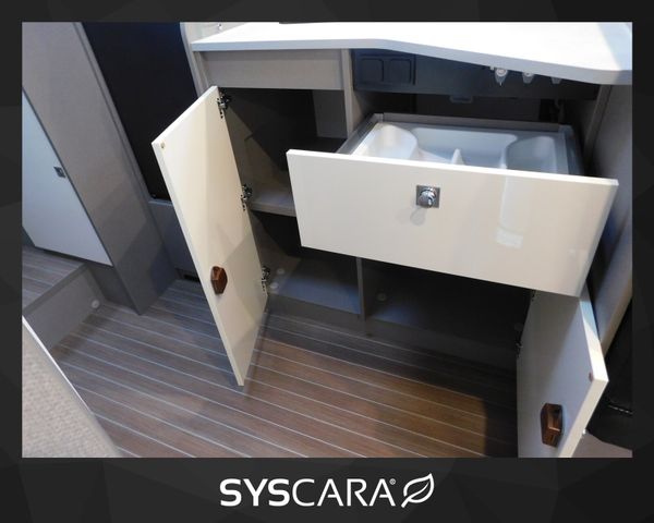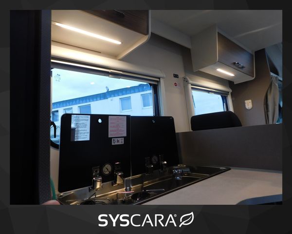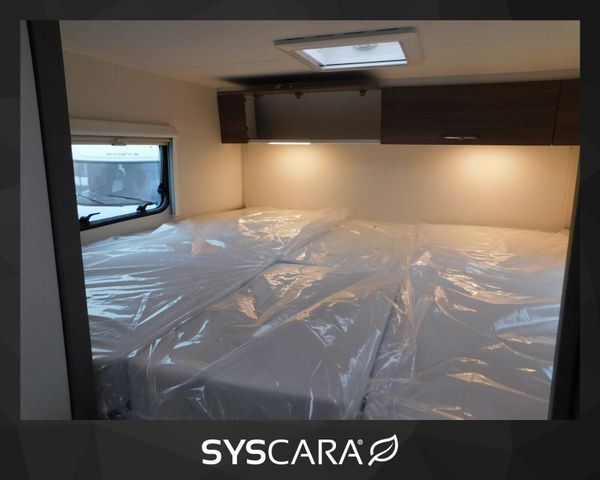 Chassis Design Paket (inkl. 16" Alufelge schwarz light) (Lenkrad und Schaltknauf in Echtleder, Armaturenbrettveredlung mit Techno-Trim Design, FIAT 16" Alufelgen schwarz matt Light Chassis), Fenster in T-Haube, Hubbett manuell mit Clima Plux Elementen, Komfort Paket (2. Außenstauraumklappe (Größe modellabhängig), Fliegengittertür, Garderobenhaken, Steckdose im Küchenblock, Steckdose in der Garage, Holzlattenrost in der Dusche), Lackierter Stoßfänger in Wagenfarbe inkl. Nebelscheinwerfer und Skid Plate schwarz