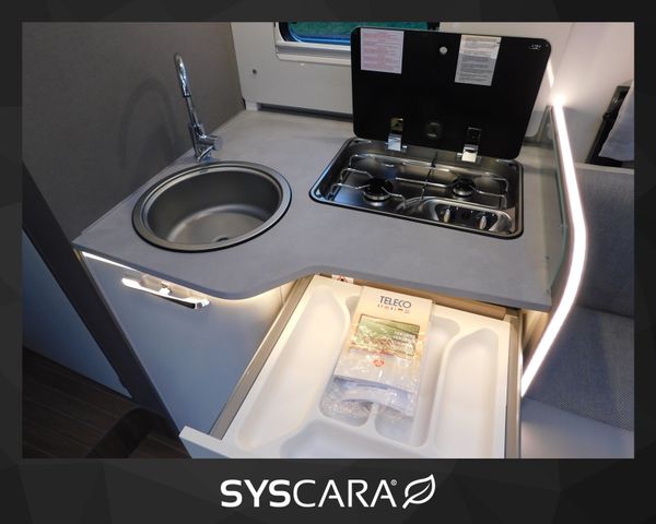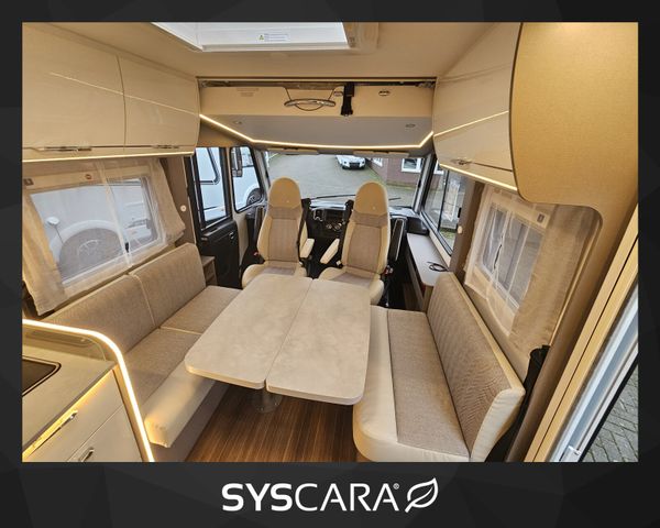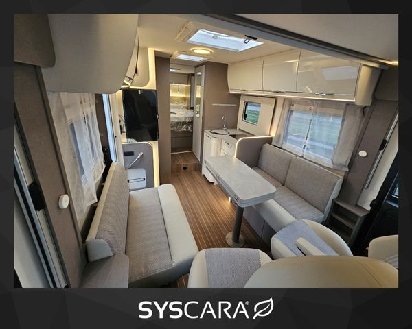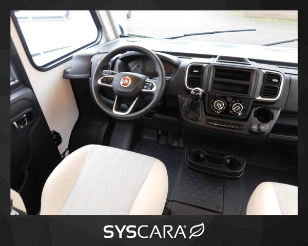 Fiat Ducato 2,2 l Multi-Jet mit 103 kW | 140 PS,Abgasnorm EURO 6d,, Start & Stop Funktion,, Frontantrieb,, ABS (Antiblockiersystem), EBD, ESC ,ASR , Hillholder(Berganfahrassistent),, CWA (Seitenwindassistent) und PCB (Multikollisionsbremse),, Tempomat,, Tagfahrlicht im Scheinwerfer integriert,, Stahlfelgen 16? inkl. Radzierblenden,, Außenspiegel, elektrisch verstellbar und beheizbar,, Elektrische Fensterheber und Zentralverriegelung im Fahrerhaus,, Frontstoßfänger in Wagenfarbe lackiert,, Fahrer- und Beifahrerairbag,, Klimaanlage Fahrerhaus manuell,, Getränkehalter in der Mittelkonsole,, USB-Steckdose (doppelt),, Pannen-Set Fix & Go Kit,, Fahrer-|Beifahrersitz mit Doppelarmlehnen,, Höhen- und Neigungsverstellung für Fahrer und Beifahrersitz,, Kraftstofftank 60 ltr.7 Jahre Dichtigkeitsgarantie,, 7 Jahre Dichtigkeitsgarantie4), Boden mit GFK-Schutz, Dach und Heckaußenhaut aus widerstandsfähigem GFK,, Dachstärke 33 mm, Wandstärke 34 mm, Fußbodenstärke 41 mm,, Seitenwandaußenhaut aus Aluminiumglattblech,, Formschöner Heckleuchtenträger, dreiteilig mit integrierten Leuchten,, Fahrerhaus-Vorhang,, Panoramadachhaube über Sitzgruppe,, Klarglas-Dachhaube 40x40,, Ausstellfenster doppeltverglast mit Verdunkelungsrollo und Fliegenschutz,, Breite Aufbautür mit Fenster,, Fliegengittertür,, Coupé Einstieg,, Großzügige Heckgarage mit Rahmenabsenkung, Verzurrösen und Innenbeleuchtung (, 2. Außenstauraumklappe (Größe modellabhängig), Zuladung Heckgarage bis zu 150 kg,