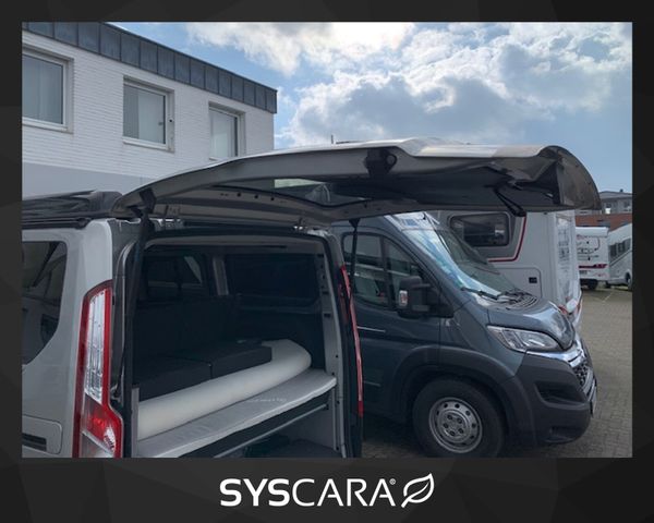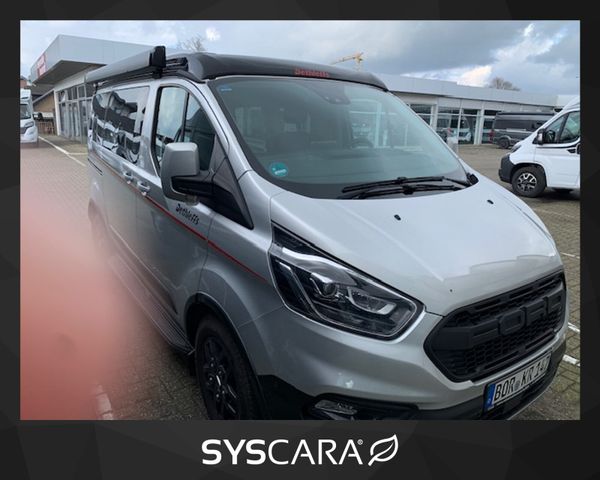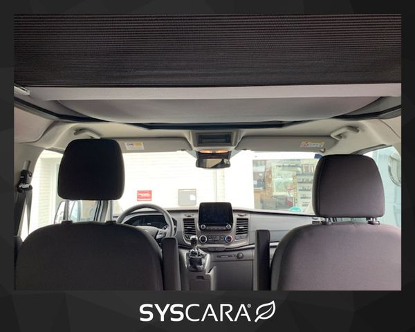 Motor / Chassis: Ford Transit Custom FORD TRANSIT CUSTOM 2,0L, Leistung: 110 kW / 150 PS, Getriebe: Schaltgetriebe, Kilometerstand: 10257 km, zul. Gesamtgewicht: 3190 kg, Bett(en): Schlafdach, Sitzgruppe: Mittelsitzgruppe, Polster: Wohnwelt Ebony (Schwarz), Holzdekor: Renolit Makalu Pearl Grey