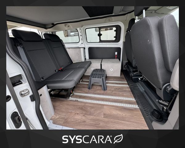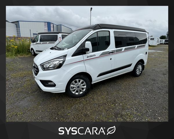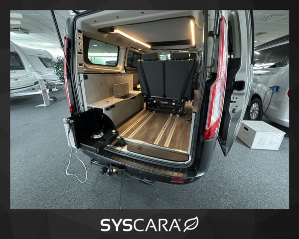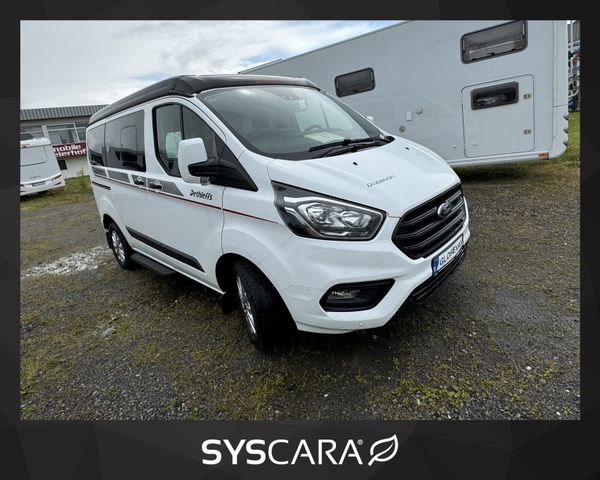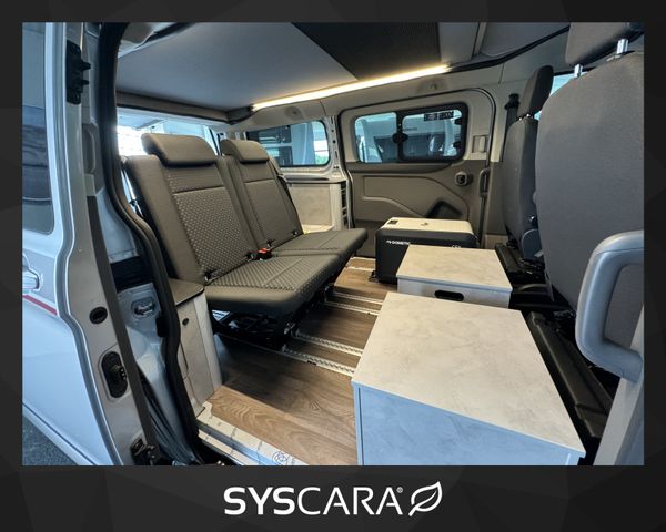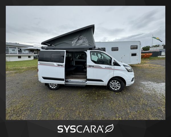Motor / Chassis: Ford Transit Custom FORD TRANSIT CUSTOM 2,0L D 130 PS, Leistung: 96 kW / 130 PS, Getriebe: Automatik, Kilometerstand: 4599 km, zul. Gesamtgewicht: 3240 kg, Bett(en): Schlafdach, Sitzgruppe: Mittelsitzgruppe, Polster: Ebony (schwarz), Holzdekor: Renolit Makalu Pearl Grey