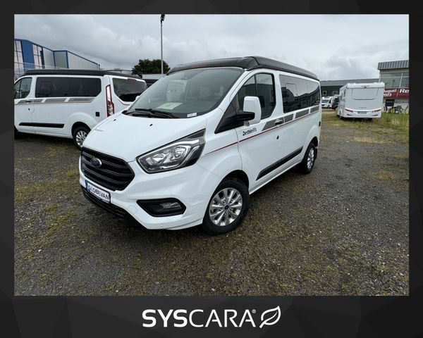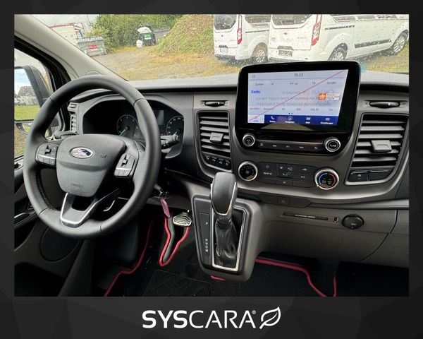 Ford Transit 2,0 L Eco Blue 6 Gang Automatik 130 PS, 6 Gang Automatik Getriebe, Wohnwelt Ebony (schwarz), Anhängevorrichtung fest, Sichtpaket 3 ( Frontscheibe beheizbar Wischwasser- Sensor, Außenspiegel elektrisch einstellbar und beheizt, Scheibenwischer mit Regensensor, Scheinwerfer-Assistent mit Tag-/Nacht-Sensor, Fahrspur-Assistent mit Müdigkeitswarner und Fernlicht-Assistent, Rückfahrkamera mit Bildübertragung des rückwärtigen Fahrwegs, im Multifunktionsdisplay, Audiosystem 21Ford Audiosystem mit 8" Multifunktionsdisplay, Connected Radio, FordPass Connect, 8"-TFT-Multifunktionsdisplay zwei Lautsprecher bei Aufstelldach, Antenne, integriertes Bedienfeld und Audio-Fernbedienung am Lenkrad, Unterstützung von Android Auto und Apple Carplay, Digitaler Radio Empfang DAB+ (Digital Audio Broadcasting), Trittstufe Schiebetür rechts, 2 Schwanenhalsleuchten mit USB Anschlüssen im Aufstelldach, Dieselstandheizung mit Wandbedienpanel, Schlafsitzbank auf Schienen verschiebbar, Außendusche, Gaskocher