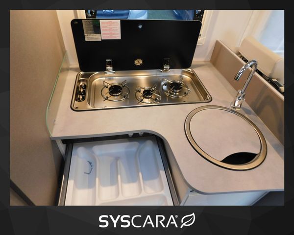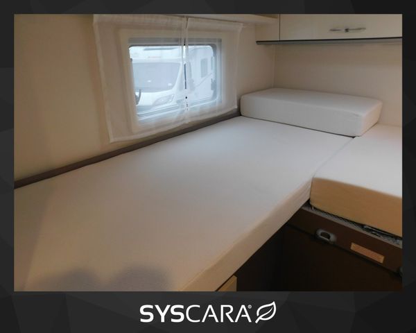 Motor / Chassis: Ford Transit 2,0 TDCi Ford Ecoblue, Leistung: 114 kW / 155 PS, Getriebe: Schaltgetriebe, Kilometerstand: 33800 km, zul. Gesamtgewicht: 3500 kg, Bett(en): Hubbett, Einzelbetten, Sitzgruppe: Seitensitzgruppe