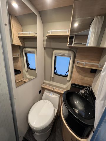 Modell 2025, Motor / Chassis: Fiat Ducato Multijet 3, Leistung: 103 kW / 140 PS, Getriebe: Schaltgetriebe, zul. Gesamtgewicht: 3499 kg, Bett(en): Doppelbett, Polster: Camino