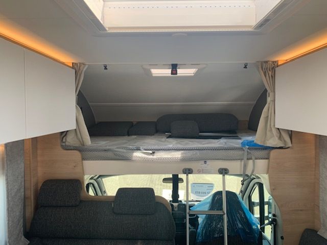 Modell 2025, Motor / Chassis: Fiat Ducato 180 MultiJet 3 Power, Leistung: 132 kW / 180 PS, Getriebe: Automatik, zul. Gesamtgewicht: 5400 kg, Bett(en): Doppelbett, Alkoven