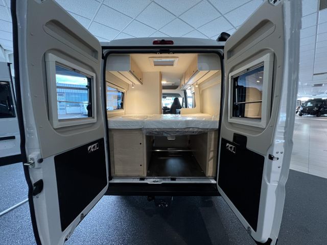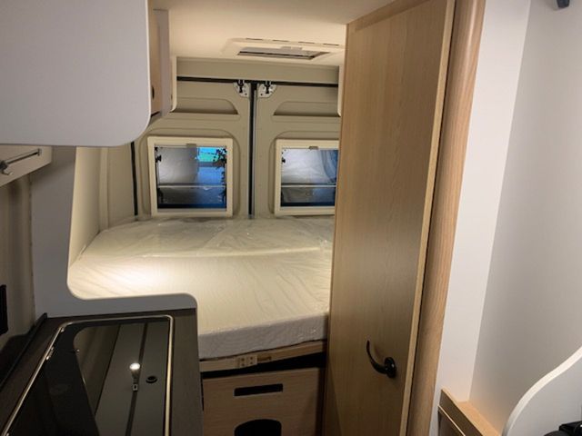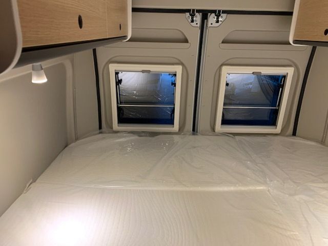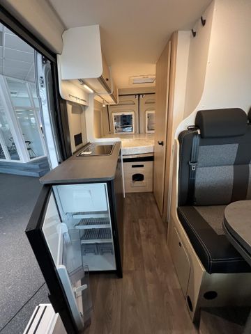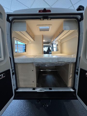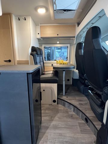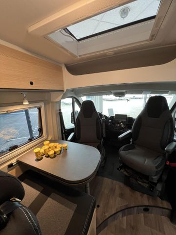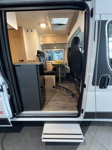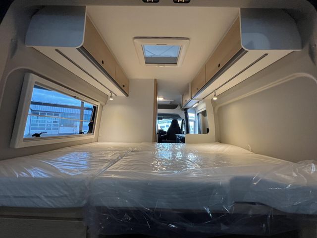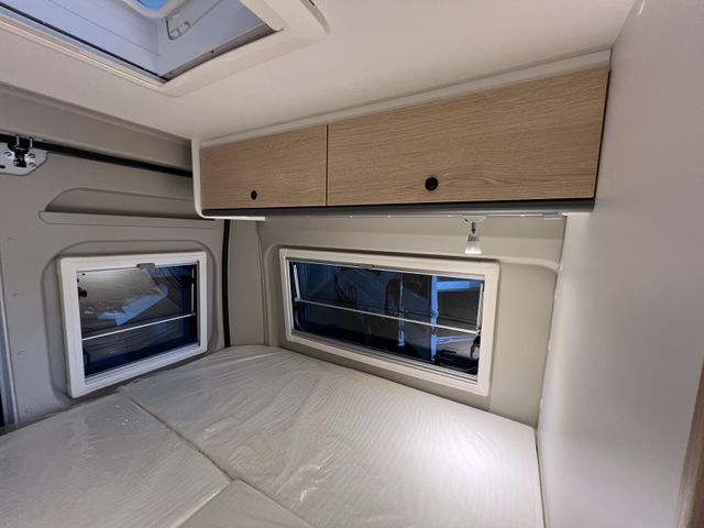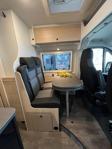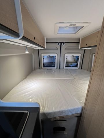 Modell 2025, Motor / Chassis: Peugeot Boxer 2.2 Blue HDi, Leistung: 103 kW / 140 PS, Getriebe: Schaltgetriebe, zul. Gesamtgewicht: 3500 kg, Bett(en): Doppelbett, Polster: Sandbar, Holzdekor: Serie