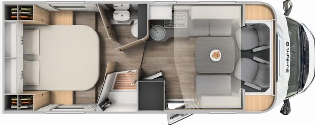 Chassisfarbe Weiß, Citroën Jumper 3.500 kg | 2.2 BlueHDi | 103 kW | 140 PS Euro 6 | 8-Gang-Automatikgetriebe, Performance Grey, Dieseltank 90 l, Fenster in Fronthaube, Hubbett mit Clima-Plux-Elementen, Großer Kühlschrank 156 l mit separatem Frosterfach 29 l, Basic Paket (Bridge Light, Komfort Eingangstür mit Fenster, Fliegengittertür (einteilig), Panoramadachhaube 70 x 50 cm, Klarglasdachhaube 40 x 40 cm), SUNLIGHT Aktion-"Ready to roll" vom 15.01.2026