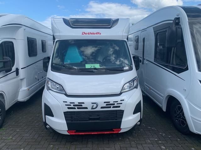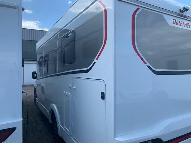 Fiat Ducato Light Tiefrahmen (3.499 kg), MultiJet 140 (2,2 l / 103 kW / 140 PS), 8-Gang Wandler-Automatikgetriebe, Active-Paket T 7052 DBM (Ausstellfenster in der T-Haube, Wohnraumtür mit Fenster inkl. Verdunkelung und Zentralverriegelung (inkl. Fahrerhaustür), Verdunklungsjalousien im Fahrerhaus, Panorama-Dachhaube 70 x 50 cm im Wohnraum, Light Moments: Indirekte Ambientebeleuchtung über den Dachstauschränken, Light Moments: Indirekte Wandflächen-Ambientebeleuchtung, Stauraum-Türe links, Doppelverglaste Rahmenfenster mit Verdunklung & Mückenschutz inkl. verkleidete Küchenrückwand, Textilleder-Wohnwelt Heron, Vorbereitung Solar, Light Moments: Küchenrückwand beleuchtet, Vorbereitung Dach-Klimaanlage, Digitales Bedienelement für Warmluftheizung, Dethleffs Naviceiver inkl. DAB+, Truck Navigation, Wireless Apple CarPlay und Android Auto, Rückfahrkamera (Einfachkamera), Vorbereitung SAT-Anlage, Active Außendesign (Heckleuchtenträger mit schwarzem Diffusor, erweiterte Beklebung, Skidplate "rot"), Gemütliche L-Sitzgruppe mit freistehendem, absenkbarem Tischfuß und 2 integrierte 3-Punkt-Gurte, Fenster im Badezimmer, Duschrost, Cassettenmarkise Omnistor 4,5 m (manuell)), Textilleder-Wohnwelt Heron, elektrisches Hubbett über der Sitzgruppe, Abwassertank isoliert