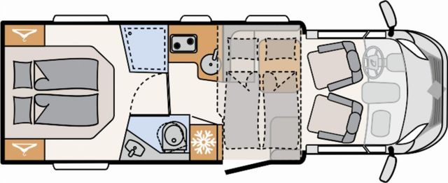 Modell 2025, Motor / Chassis: Fiat Ducato 140 MultiJet 3, Leistung: 103 kW / 140 PS, Getriebe: Automatik, zul. Gesamtgewicht: 3499 kg, Bett(en): Doppelbett, Hubbett, Polster: Heron