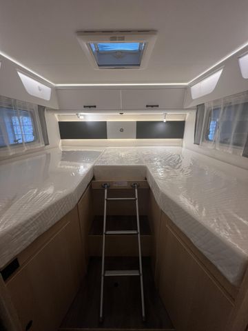 Modell 2025, Motor / Chassis: Fiat Ducato 2.2 Multijet, Leistung: 103 kW / 140 PS, Getriebe: Automatik, zul. Gesamtgewicht: 3500 kg, Bett(en): Hubbett, Einzelbetten