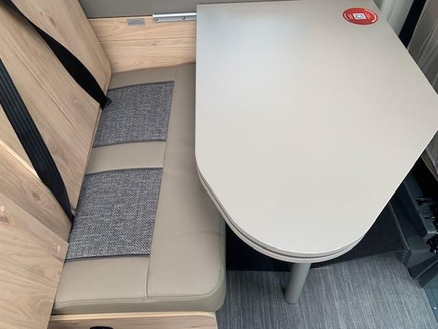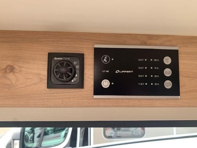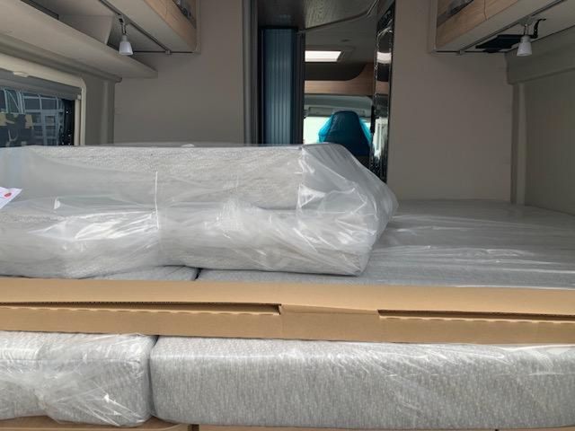 Modell 2025, Motor / Chassis: Fiat Ducato Multijet 3, Leistung: 103 kW / 140 PS, Getriebe: Automatik, zul. Gesamtgewicht: 3499 kg, Bett(en): Doppelbett, Sitzgruppe: Mittelsitzgruppe, Polster: Camino, Holzdekor: Noce Nagano