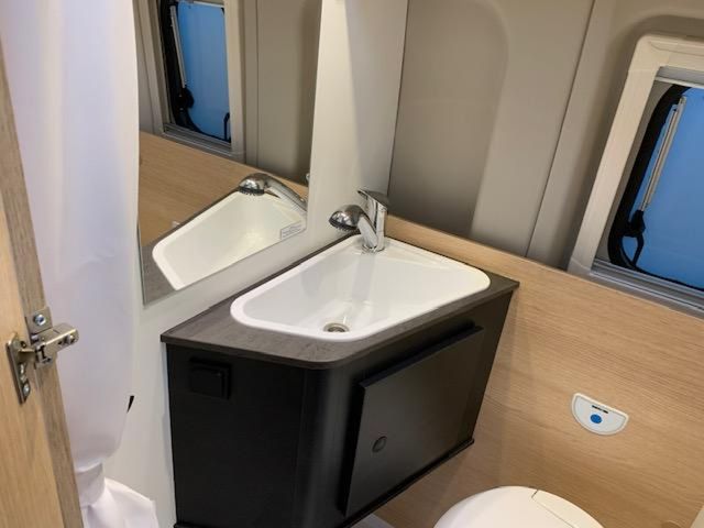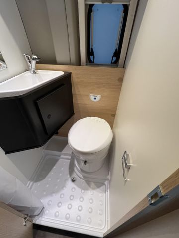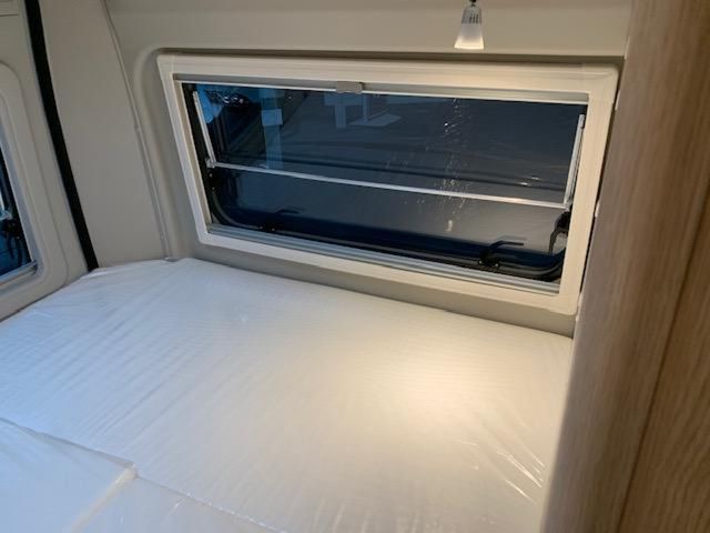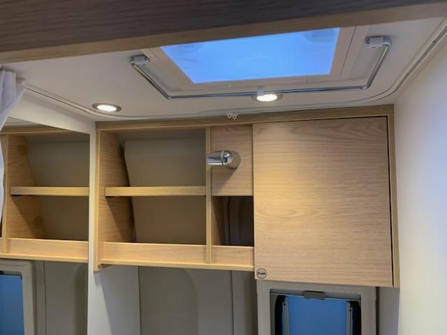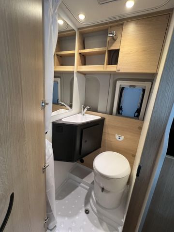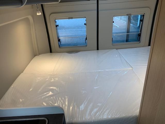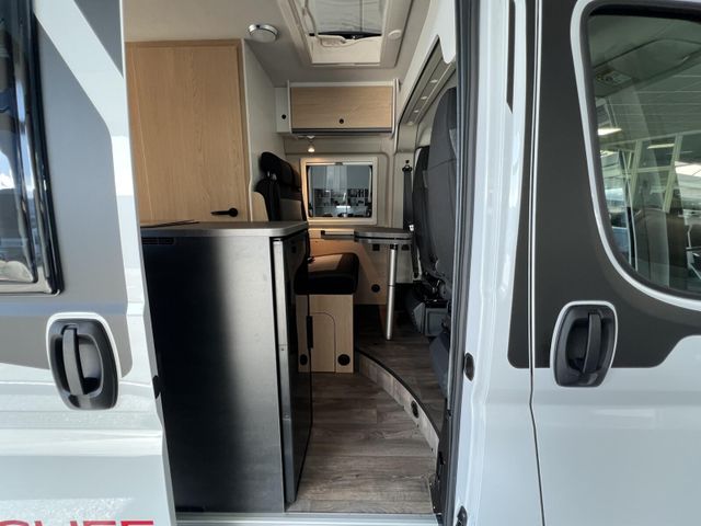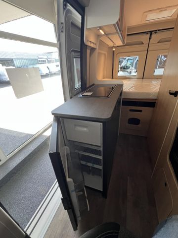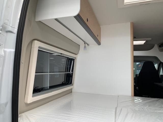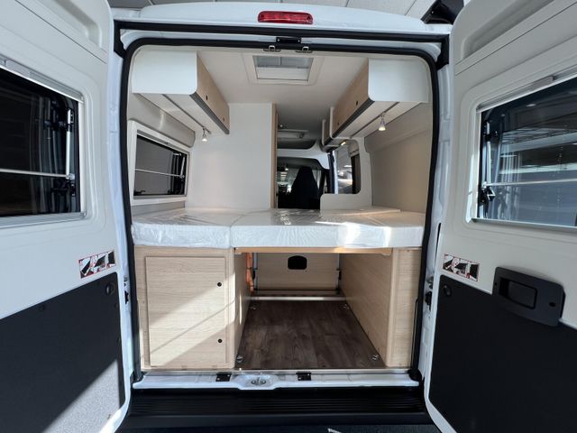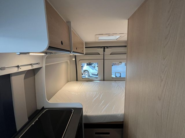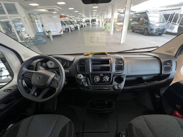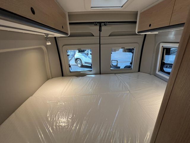 Modell 2026, Motor / Chassis: Peugeot Boxer 2.2, Leistung: 103 kW / 140 PS, Getriebe: Schaltgetriebe, zul. Gesamtgewicht: 3500 kg, Bett(en): Doppelbett, Polster: Sandbar, Holzdekor: Eiche Moyet