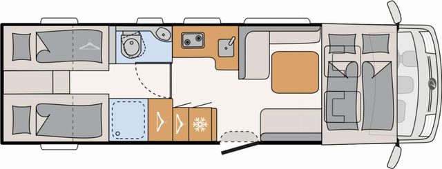 Modell 2026, Motor / Chassis: 180 MultiJet 3 Power, Leistung: 132 kW / 180 PS, Getriebe: Automatik, zul. Gesamtgewicht: 5400 kg, Bett(en): Hubbett, Einzelbetten