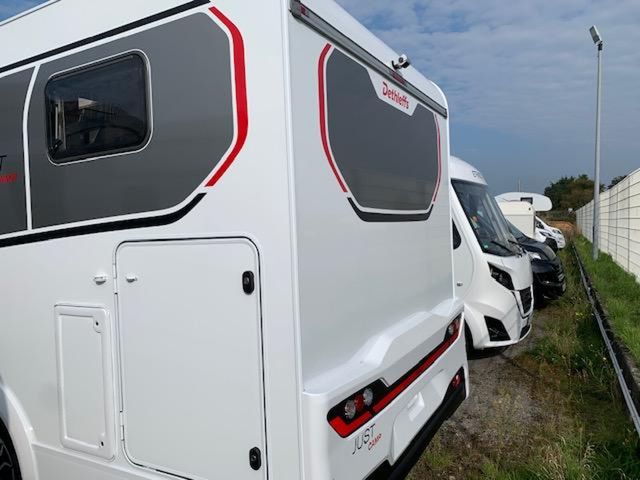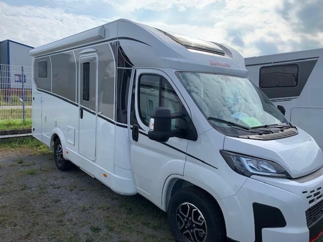 Active-Paket T 6812 EB (Ausstellfenster in der T-Haube, Wohnraumtür mit Fenster inkl. Verdunkelung und Zentralverriegelung (inkl. Fahrerhaustür), Verdunklungsjalousien im Fahrerhaus, Panorama-Dachhaube 70 x 50 cm im Wohnraum, Light Moments: Indirekte Ambientebeleuchtung über den Dachstauschränken, Light Moments: Indirekte Wandflächen-Ambientebeleuchtung, Stauraum-Türe links, Doppelverglaste Rahmenfenster mit Verdunklung & Mückenschutz inkl. verkleidete Küchenrückwand, Textilleder-Wohnwelt Heron, Vorbereitung Solar, Light Moments: Küchenrückwand beleuchtet, Vorbereitung Dach-Klimaanlage, Digitales Bedienelement für Warmluftheizung, Dethleffs Naviceiver inkl. DAB+, Truck Navigation, Wireless Apple CarPlay und Android Auto, Rückfahrkamera (Einfachkamera), Vorbereitung SAT-Anlage, Active Außendesign (Heckleuchtenträger mit schwarzem Diffusor, erweiterte Beklebung, Skidplate "rot"), Bettumbau Einzelbetten zu Doppelbett, Gemütliche L-Sitzgruppe mit freistehendem, absenkbarem Tischfuß und 2 integrierte 3-Punkt-Gurte, Duschrost, Cassettenmarkise Omnistor 4.0 m (manuell)), Fiat Ducato Light Tiefrahmen (3.499 kg), MultiJet 140 (2,2 l / 103 kW / 140 PS), 8-Gang Wandler-Automatikgetriebe, Textilleder-Wohnwelt Heron, elektrisches Hubbett über der Sitzgruppe, Bettenbau Sitzgruppe quer