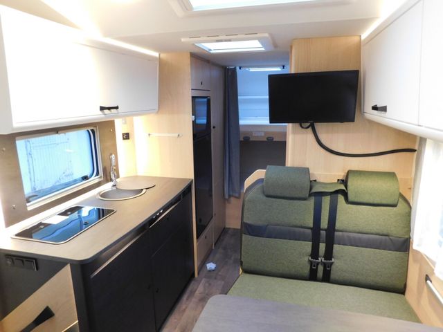 103 kW / 140 PS Euro 6D ?, 6-Gang-Schaltgetriebe,, Frontantrieb,, Stoßfänger lackiert,, Tagfahrlicht im Serienschweinwerfer integriert,, Fahrer-/ und Beifahrerairbag,, ABS, EBD, ESP,, Tempomat,, Radiovorbereitung mit Lautsprechern,, Elektrische Fensterheber und Zentralverriegelung im Fahrerhaus,, Start & Stop Funktion,, Pannen-Set Fix & Go Kit,, Scheibenbremsen, Umluftheizung, Drehzahlmesser, Servolenkung, Wegfahrsperre, 3-Punkt-Sicherheitsgurt, Kühlergrill lackiert und verchromt,, Wohnwelt Green Trail,, Klimaanlage Fahrerhaus manuell,, DAB Antenne integriert im Außenspiegel,, Außenspiegel elektrisch und beheizt,, 16" Alufelgen für Light-Chassis, 2. Außenstauraumklappe (Größe modellabhängig),, Bettenumbau im Bereich Sitzgruppe 20), Sicherheitspaket Alkoven:2 Kopfstützen und 2 Beckengurte mittl. Sitzbank entgeg. Fahrtrichtung (zul. Personenzahl ergibt sich aus Fahrzeuggewicht)*20), USB-Steckdose,, Fahrer-/Beifahrersitz drehbar,, Fahrer-/Beifahrersitz in Wohnraumstoff mit Doppelarmlehnen (Captain Chair),, Höhen- und Neigungsverstellung für Fahrer- und Beifahrersitz,, 90l Dieseltank,