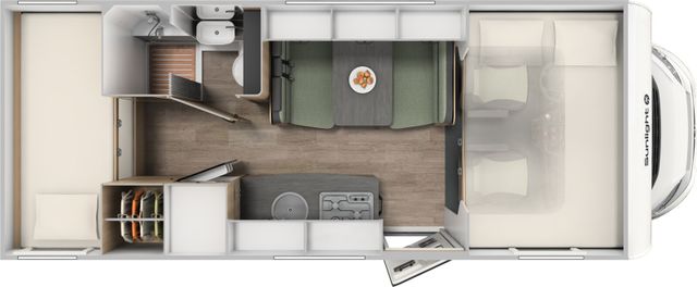 Mit der geräumigen Aufteilung und den zusätzlichen, nach oben verlagerten (großen und superbequemen) Betten bieten unsere Alkoven Reisemobile ausreichend Platz für die mehrköpfige Familie. Plus: Die Extra-Betten müssen nicht umgebaut, das Bettzeug nicht verräumt werden.