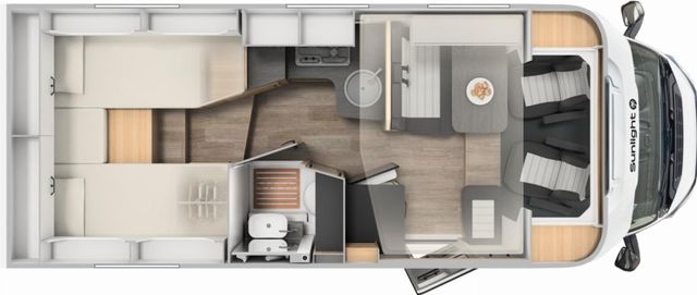 Fiat Ducato 3.500 kg | 2.2 | 103 kW | 140 PS Euro 6 | 6-Gang-Schaltgetriebe, Chassisfarbe Schwarz inkl. Seitenwand in Silberglattblech, Dieseltank 90 l, Abwassertank isoliert, Holzrost in der Dusche, Faltverdunkelung, Kabelvorbereitung für Rückfahrkamera, SUNLIGHT Aktion-"Ready to roll" vom 15.01.2026