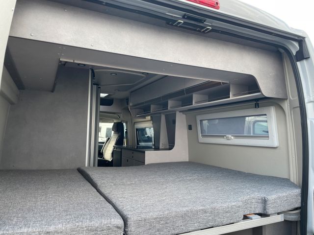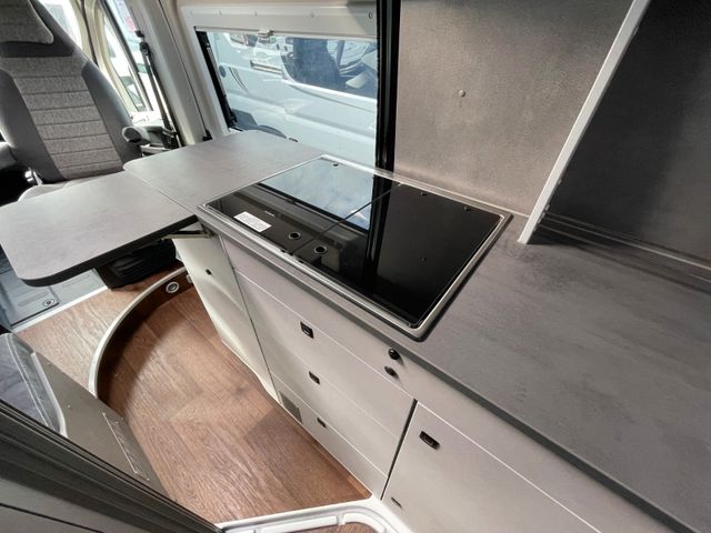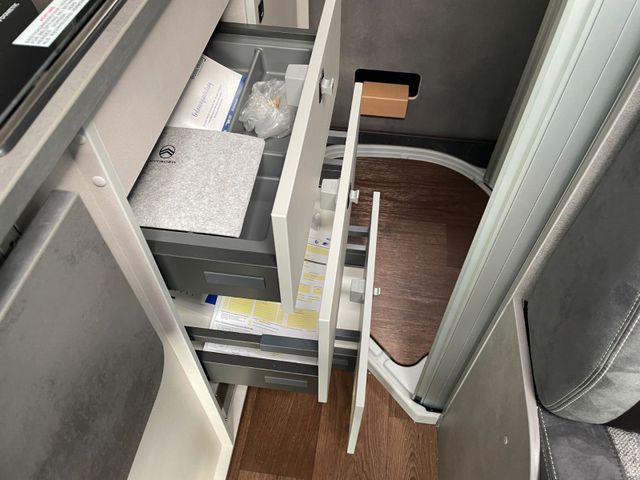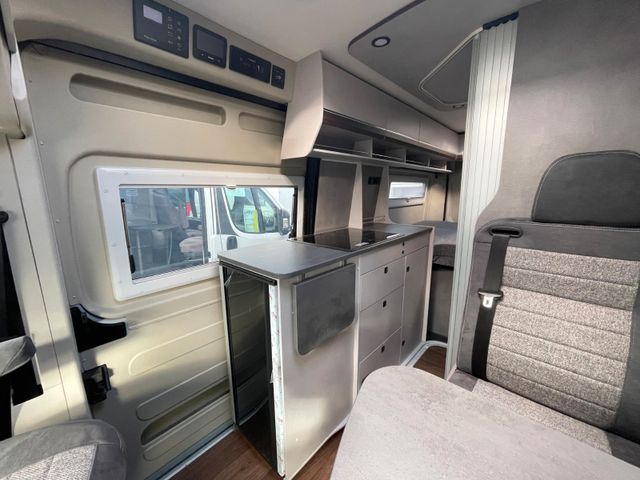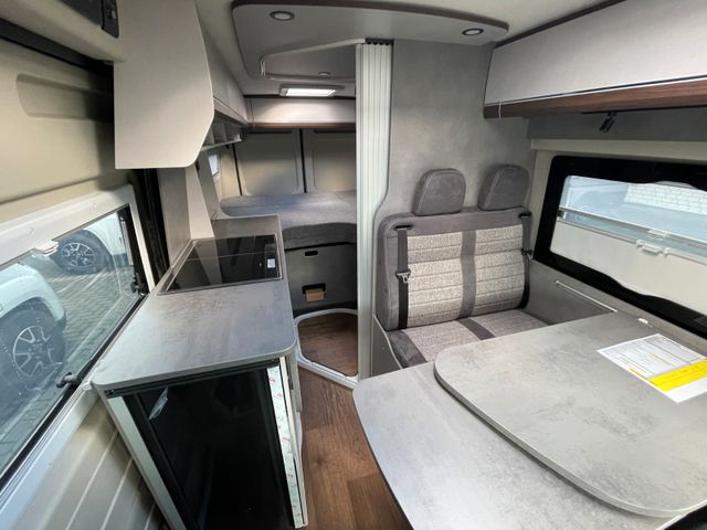 Holzdekor Mokka, Wohnwelt H-Line: Samba, Expeditionsgrau , Citroen Jumper 140PS Schaltwagen, Regen- und Lichtsensoren, Reifendrucksensoren, Traction +, Zweiter Funkschlüssel, 4. Sitzplatz Shine als Doppelsitzbank ( Samba ), Bordbatterie zusätzlich, Zusätzlicher Steckdosensatz 230/USB, Truma INetX, Duo Control, Toilettenraumfenster