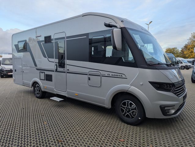 Chassis Fiat Ducato mit Tiefrahmen, Airbag Fahrer+Beifahrer, ABS, ASR, ESP, EBD, HBA, LAC, MSR, Hillholder, Traction+, Einparkhilfe hinten, LED-Tagfahrlicht, LED-Frontscheinwerfer, LED-Nebel-Scheinwerfer, LED-Rücklicht, Klimaanlage FH, Hängende Außenspiegel elek. verstell- und beheizbar, Fensterheber FH links elek., Funk-Zentralverriegelung FH, Tempomat, dreh- und höhenverstellbare Komfort-FH-Sitzemit Armlehnen im Wohnraumdesign, Abgasnorm Euro 6e, ECO-PACK (Stopp-Start + Lichtmaschine intelligent), 16"-Räder, Reifen-Reparatur-Set, Wohnraumfenster mit Rahmen, Panorama-Dachhaube Front, Funktions-Doppenboden, APPVorbereitung Adria MACHplus, AGM-Wohnraumbatterie 100Ah, Ladestation 230V / 12V in Garage, Sicherheits-Gasregler MonoControl CS, Dunstabzug, Abdeckung Kocher + Spüle, Abtropfschale, Cassetten-Toilette mit elektrischer Spülung
