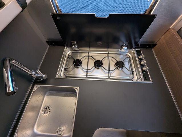 Einparkhilfe hinten, Lenkrad in Lederoptik, DAB-Radio-Vorbereitung FH, Leichtmetall-Felgen, Kurbelstützen hinten, Falt-Verdunkelung Fahrerhaus, Wohnraumtür mit Fliegenschutz + Fenster + ZV, Federkern-Matratze auf Festbett(en), Ladebooster, TFT-Halterung, Gasfilter