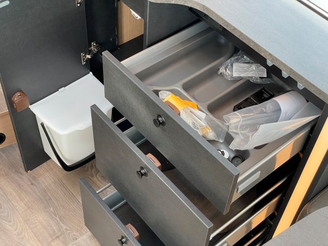 Wohnwelt Adventure, Stoßfänger lackiert, Fenster in Fronthaube, Rahmenfenster, Beklebung und Schriftzug Adventure, Bettenumbau Bereich Sitzgruppe, Großer Kühlschrank, Paket One (Markise, Fahrradträger), Basic-Paket ( Bridge Light, Komfort Eingangstür mit Fenster, Fliegengittertür (einteilig), Panoramadachhaube 70 x 50 cm, Klarglasdachhaube 40 x 40 cm)