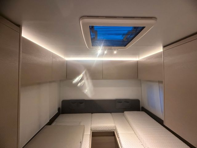 Polster Selena, Fußbodentemperierung, Transportbox System Gaskasten, Reich Basic 1.6 Mover Easydriver halbautomatisch, Duo Control CS inkl. Gasfilter, 230V/12V/SAT Kombidose außen, 2x Zusätzliche Steckdosen über Einzelbetten, Autarkvorbereitung inkl. Batterie 12V, Warmwasser 5L, Beule rechte seite unterhalb des Küchenfenster, 12Volt Umluft, Heizung 3004, Antischlingerkupplung, TV Vorbereitung innen, Frischwasser 45L, Abwassertank rollbar, Ambiente Beleuchtung, usw