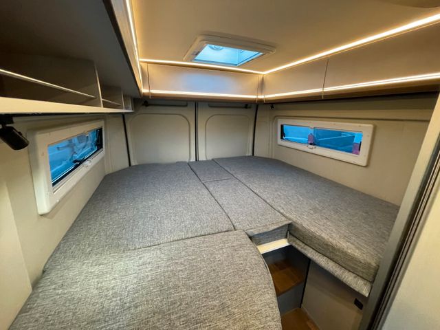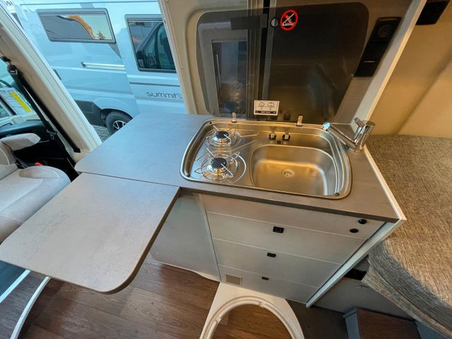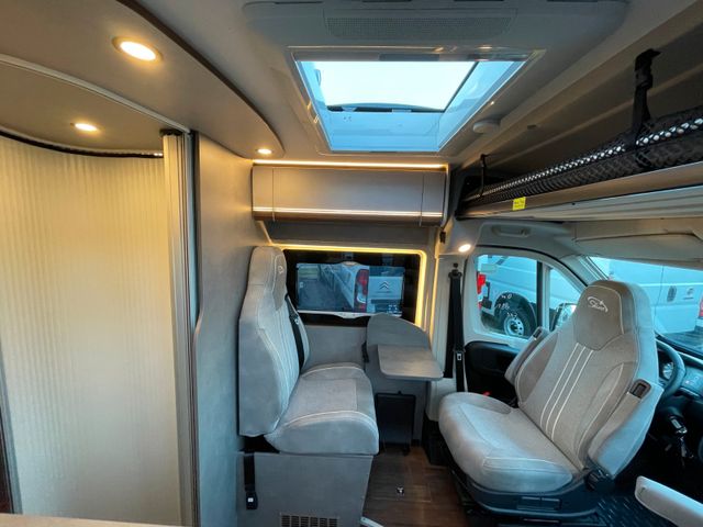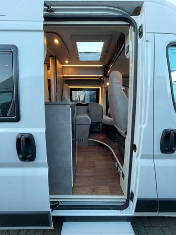 Fiat Ducato 180Ps, Automatikgetriebe, Holzdekor Mokka, Wohnwetl Grigio Lucente, Alufelgen 16", Lederlenkrad, Traction +, Zusätzlicher Steckdosensatz, Truma INet X Bedienpanel, Toilettenfenster, Multiroof Ablage