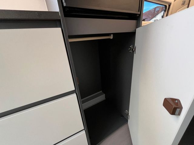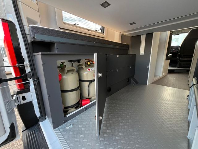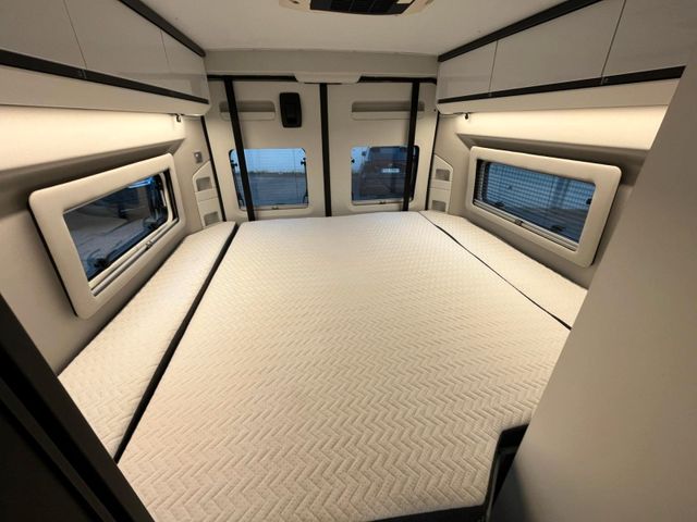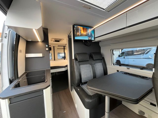 Nebel-Scheinwerfer mit Kurvenlicht-Funktion, Rückfahrwarner, Lenkrad und Schaltknauf in Teilleder, Kühlergrill + Scheinwerferrand schwarz und Skidplate schwarz, Fahrerhausscheiben getönt, Wohnraumscheiben getönt, Fenster inkl. Kombirollo in Hecktür links, Falt-Verdunkelung Frontscheibe, Falt-Verdunkelung FH-Seitenfenster, Falt-Verdunkelung Wohnraum-Seitenfenster, Fliegenschutz an Schiebetür, Einstiegsstufe elektrisch, Einstiegsbeleuchtung, LED-Ambientebeleuchtung, Lade-Booster (für optimalere Ladung während der Fahrt), Sicherheits-Gasregler MonoControl CS + Gasfilter, Abwassertank isoliert und beheizbar, Abdeckung Kocher, Abdeckung Spüle