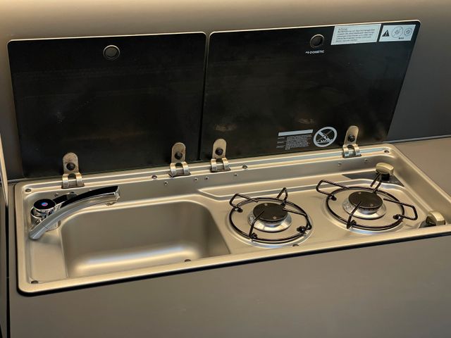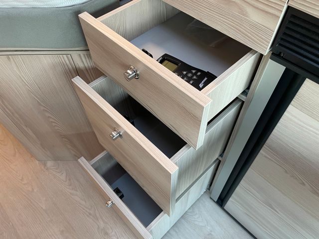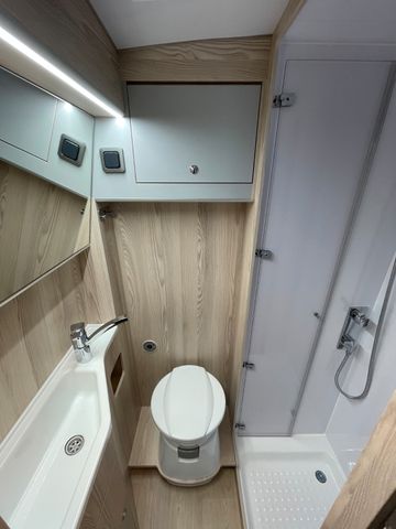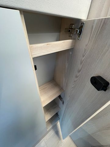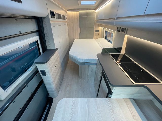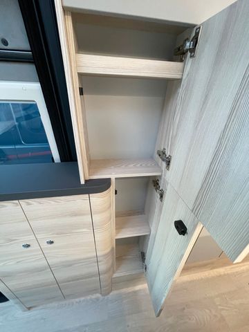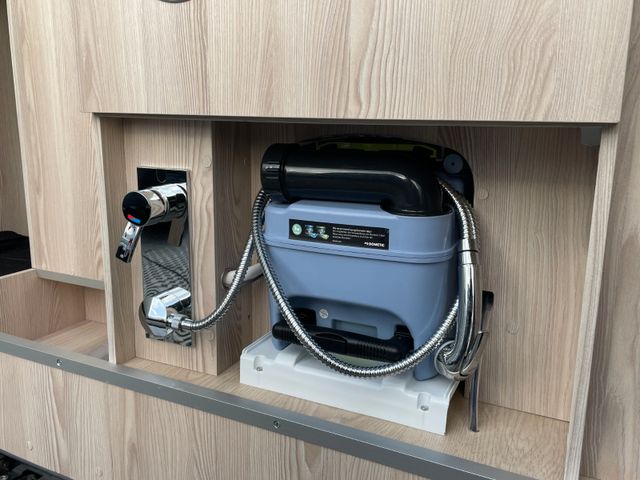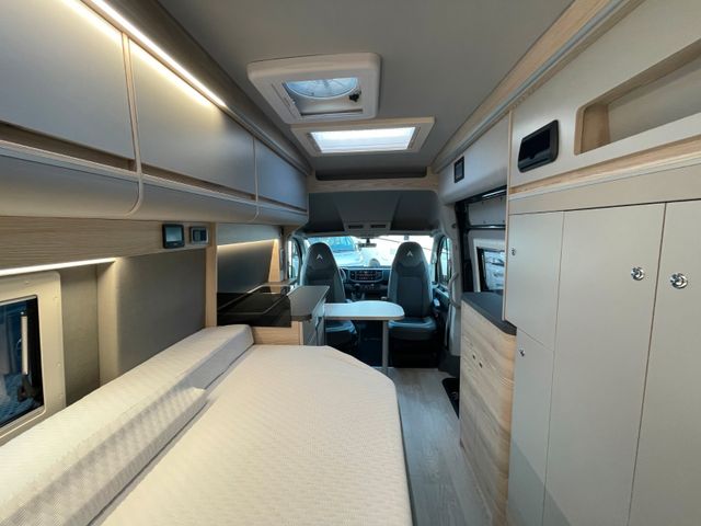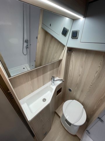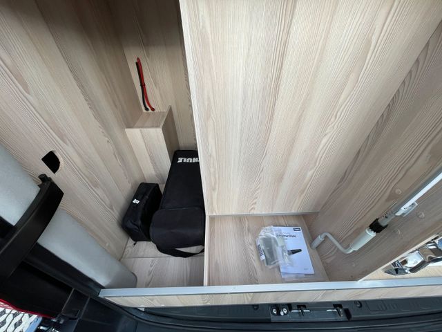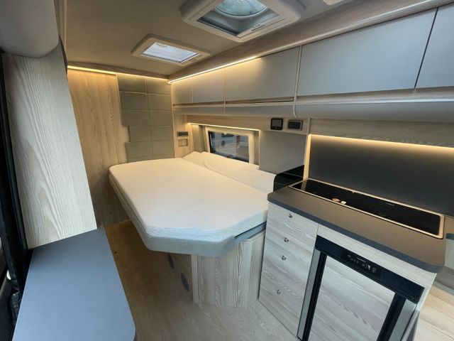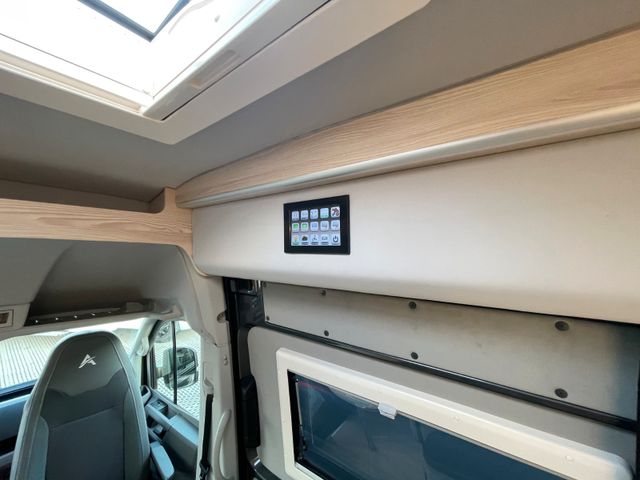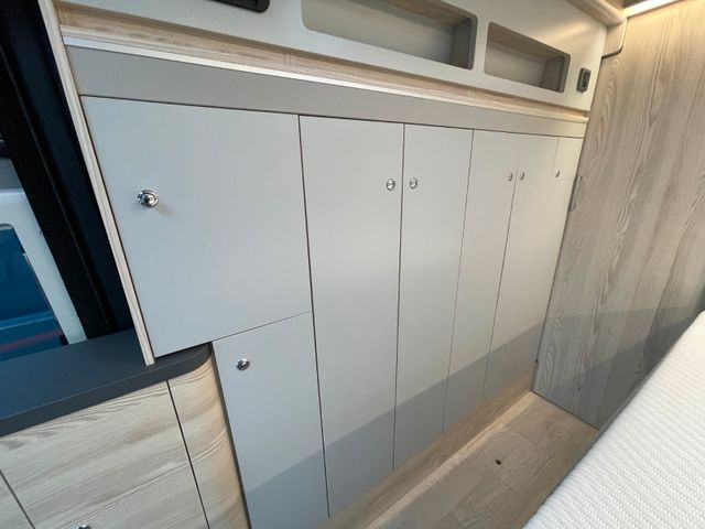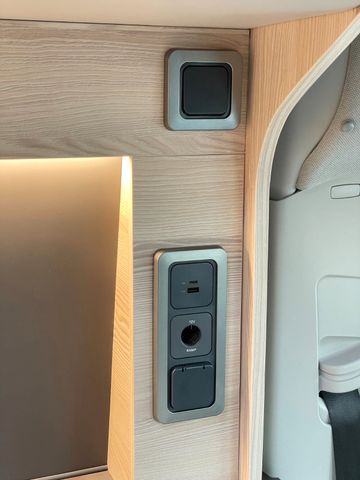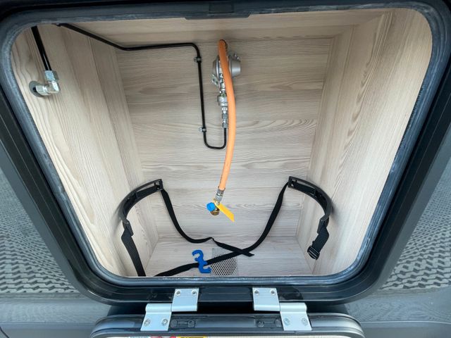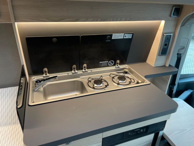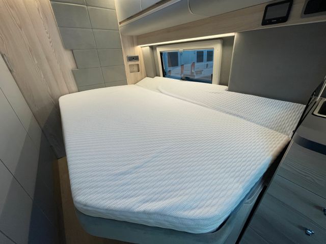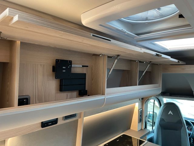 Design & Farbe: Indiumgrau Metallic, Innenfarbe hell, Komfort & Praktisch: 2 Fahrplätze und 2 Schlafplätze, Schwarze Markise, Außendusche, Technik & Energie: Lithium-Batterie LiFePO4 150 Ah mit Bluetooth, Verkabelung für Wechselrichter, Bedienung & Steuerung: LCD Bedienpanel, Ausstattung: Softclose (nur bei DUO), TV-Schrank (Halterung), Serienpolster, Inklusive: 2 Jahre GGG Garantie, Besonderheit: Fahrzeug war als Mietfahrzeug im Einsatz