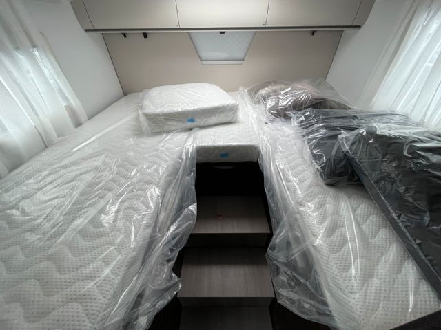 Mittelsitzgruppe, Seitensitzgruppe, WC, Heckgarage, Standklimaanlage, Standklima, Festbett,