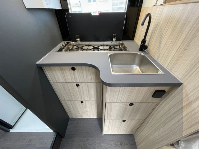 Basisfahrzeug Citroen Jumper 2,2 BlueHDI 140 PS, Faherhaus schwarz metallic lackiert, Markise, Solar-Anlage, 16'' Alufelgen, Eingangstür mit Fenster und Moskitonetzh, Isofix-Kindersitz-Befestigung, Edelstahlkocher mit elektrischer Zündung, manuelle Klimaanlage, Tempomat und Geschwindigkeitsregler, Außenspiegel elektrisch und beheizbar, 90 Liter Kraftstofftank, Fahrerhausverdunklung Plissee, Sicherheitsgasregler MonoControl CS + Gasfilter, Ganzjahresreifen mit Schneeflockensymbol, Radiovorbereitung, Tablet- und Getränkehalter, Zentralverriegelung inkl. Aufbautür, Panorama Dachfenster Front, Ladebooster, 100 Ah AGM-Batterie, Garagentüren beidseitig, 64 x 115 cm, Garagenmaße 100x218x90 cm, Kassettentoilette, Truma Combi 4, Truma CP Plus, Frischwassertank 100 l, Abwassertank 88 l mit elektrischem Ablassventil, Seitz-Rahmenfenster, Sat-Vorbereitung