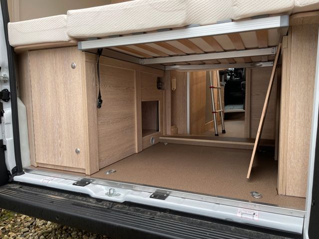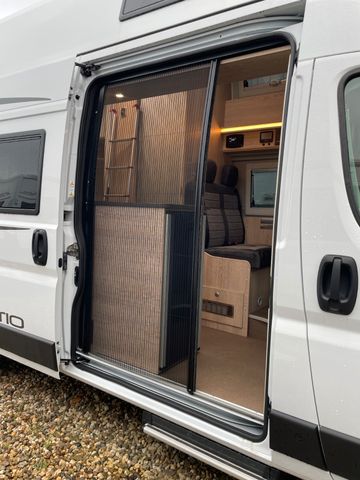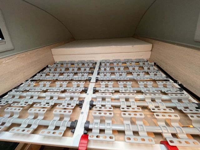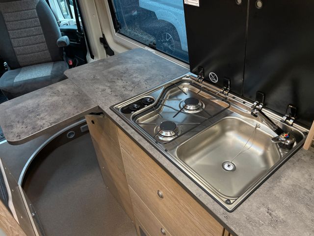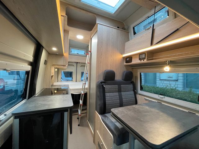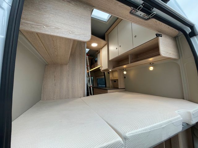 Der ideale Camper für alle, die Wert auf Flexibilität und Geräumigkeit legen. Das innovative Highlight: ein klappbares Hubbett, das tagsüber für mehr Platz sorgt und nachts gemütlichen Schlafkomfort bietet.