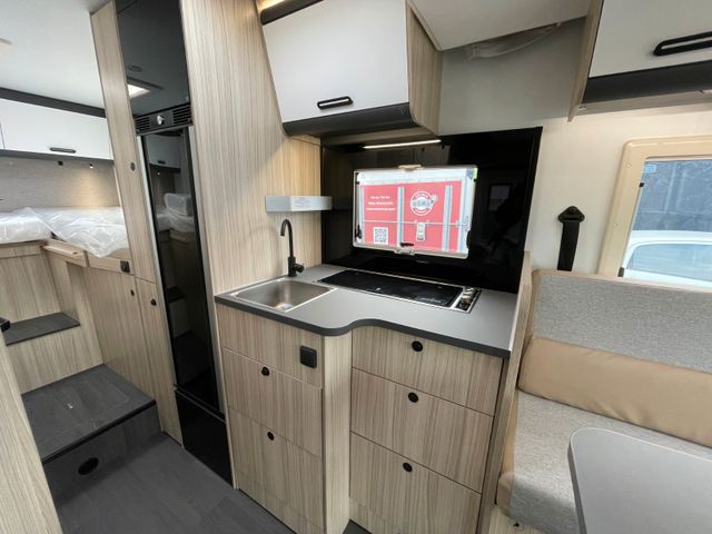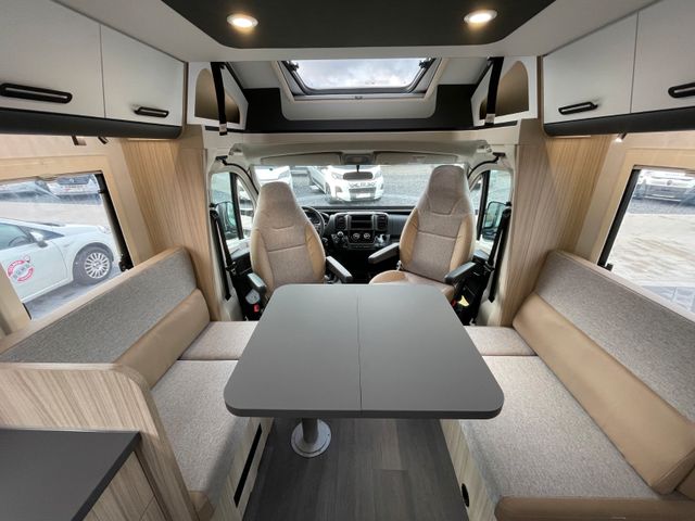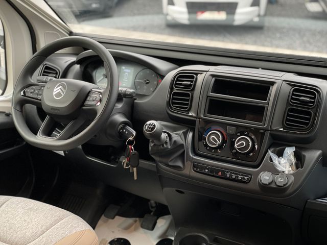 Basisfahrzeug Citroen Jumper 2,2 BlueHDI 140 PS, Faherhaus schwarz metallic lackiert, Markise, Solar-Anlage, 16'' Alufelgen, Eingangstür mit Fenster und Moskitonetzh, Isofix-Kindersitz-Befestigung, Edelstahlkocher mit elektrischer Zündung, manuelle Klimaanlage, Tempomat und Geschwindigkeitsregler, Außenspiegel elektrisch und beheizbar, 90 Liter Kraftstofftank, Fahrerhausverdunklung Plissee, Sicherheitsgasregler MonoControl CS + Gasfilter, Ganzjahresreifen mit Schneeflockensymbol, Radiovorbereitung, Tablet- und Getränkehalter, Zentralverriegelung inkl. Aufbautür, Panorama Dachfenster Front, Ladebooster, 100 Ah AGM-Batterie, Garagentüren beidseitig, 74 x 110 cm, Garagenmaße 95x218x114 cm, Kassettentoilette, Truma Combi 4, Truma CP Plus, Frischwassertank 100 l, Abwassertank 88 l mit elektrischem Ablassventil, Seitz-Rahmenfenster, Sat-Vorbereitung