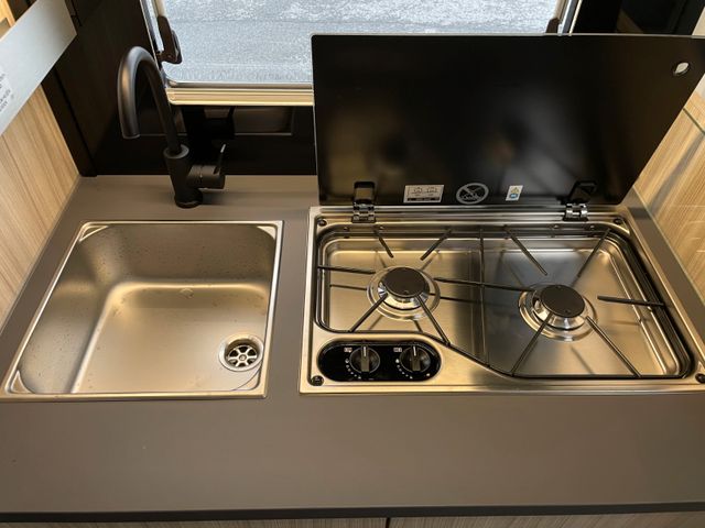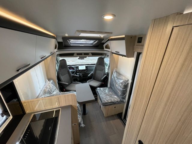 Basisfahrzeug Ford Transit 2.0 EcoBlue 165, Automatik, Faherhaus schwarz metallic lackiert, Nebelscheinwerfer, elektrische Parkbremse, Notbremsassistent, Verkehrszeichenerkennung, Einparkhilfe vorne, Spurhalteassistent, Reifendruckkontrollsystem, Markise, Solar-Anlage, 12'' Audiosystem SYNC IV mit 5G modem, Rückfahrkamera, 16'' Alufelgen, Lederlenkrad, Eingangstür mit Fenster und Moskitonetz, Isofix-Kindersitz-Befestigung, Edelstahlkocher mit elektrischer Zündung, manuelle Klimaanlage, Tempomat und Geschwindigkeitsregler, Außenspiegel elektrisch und beheizbar, 90 Liter Kraftstofftank, Fahrerhausverdunklung Plissee, Sicherheitsgasregler MonoControl CS + Gasfilter, Ganzjahresreifen mit Schneeflockensymbol, Radiovorbereitung, Tablet- und Getränkehalter, Zentralverriegelung inkl. Aufbautür, Panorama Dachfenster Front, Ladebooster, 100 Ah AGM-Batterie, Garagentüren beidseitig, 74 x 116 cm, Garagenmaße 95x200x90 cm, Kassettentoilette, Truma Combi 4, Truma CP Plus, Frischwassertank 100 l, Abwassertank 88 l mit elektrischem Ablassventil, großer Kühlschrank mit 157 l Inhalt, Seitz-Rahmenfenster, Sat-Vorbereitung