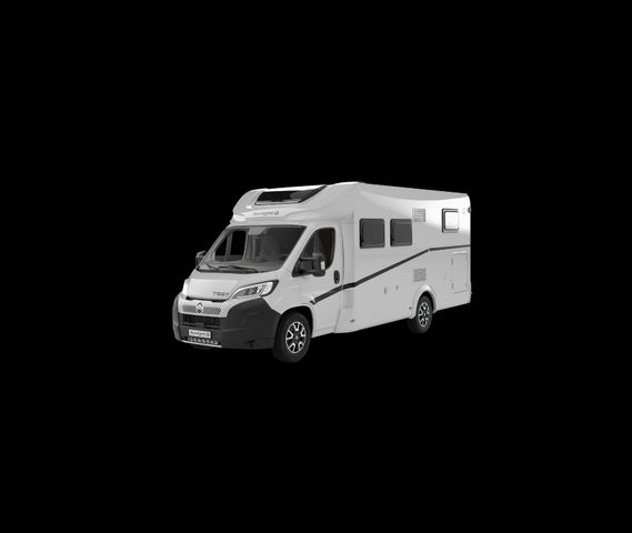 Dachhaube in Milchplexiglas mit Fliegenschutz, Großzügige Heckgarage mit Rahmenabsenkung, Antirutschfläche, Verzurrösen und Innenbeleuchtung (modellabhängig), Hochwertige Aufbautür mit ergonomischer Griffposition innen und außen, Schwallwasserdichtungen an den Außenstauraumklappen und Türen, Seitenwandaußenhaut aus Aluminium-Glattblech, Dach- und Wandstärke 34 mm, Fußbodenstärke 42,5 mm, Dach- und Heckaußenhaut aus widerstandsfähigem GFK, 7 Jahre Dichtigkeitsgarantie, Ausstellfenster doppeltverglast mit Verdunkelungsrollo und Fliegenschutz (ausgenommen Toilettenraumfenster), Zuladung Heckgarage bis zu 150 kg, Elektrische Trittstufe