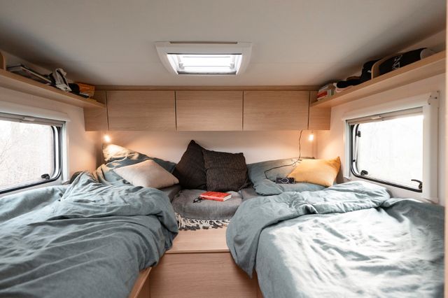 Zuschalt-/Trennautomatik für Starter- und Aufbaubatterie sowie Kühlschrank, Leistungsstarke, wartungsfreie AGM-Aufbaubatterie (95 Ah) inkl. Ladegerät (18 A), LED-Wohnraumleuchte, FI-Schutzschalter, Elektrischer Ladeautomat für Aufbau- und Fahrzeugbatterie 12 V / 18 A, CEE-Außenanschluss für 230 V mit Sicherungsautomat, Bord-Control-Panel mit Angabe aller Füllstände und Batteriekapazitäten, USB Steckdose 3 x A / 1 x C (Grundrissabhängig)