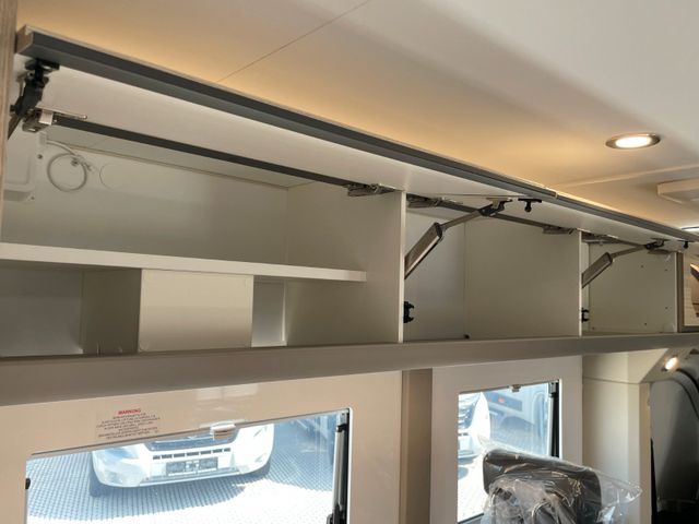 140 Multijet, 103kW, 140PS, Automatikgetriebe, Chassis 3,5 t, Airbag Fahrer + Beifahrer, ABS, ASR, ESP, Nebelscheinwerfer, 16" Leichtmetall-Felgen, LED-Multifunktionsrückleuchten, Multifunktionslenkrad in Lederoptik und Antenne im Außenspiegel, Klimaanlage Fahrerhaus, Plissee-Verdunkelung Fahrerhaus, Komfort-Fahrerhaussitze mit Armlehnen im 60Y Design, Breite Wohnraum-Eingangstür mit Zentralverriegelung, Fenster und Fliegenschutz, Exklusive 60Y Polsterausstattung, Polster ‘Arno’ optional, Tisch Weiß, optional Anthrazit, Abdeck-Holzbrett 60Y für Spüle, Evopore Schaumstoffmatratze, TV-Halterung, DC/DC-Wandler (Lichtmaschinen-Booster), Abwassertank isoliert, beheizt, Kurbelstützen