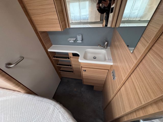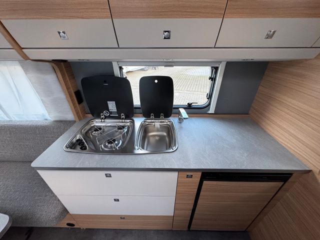 Dusch Paket: Duschausstattung inkl. Duscharmatur und -vorhang, City-Wasseranschluss, Sicherheitspaket: ATC Trailer Control, DuoControl CS und EisEx, Wasser- und Elelktrik-Autark-Paket Combi 6: Warmluftheizung Combi 6, Elektrik Autark Ausstattung, Frischwassertank 70L, Digitalbedienteil für Combi-Heizung, Styling Paket weiß: Deichselabdeckung, BigFoots, Vollgummi Stützrad, Rangiergriffe in Chrome Ausführung, Heckleuchtenträger mit hohem Aufsatz u. Dachreling, Bugfront mit hohem Aufsatz, Glattblech in weiß, Wohnwelt Mount, Auflastung auf 2.500kg, Bugfenster im Toiraum, Stauraumklappe hi. rechts 1069x299, Stauraumklappe hi. links 1069x299, Indirekte Beleuchtung