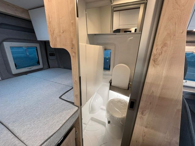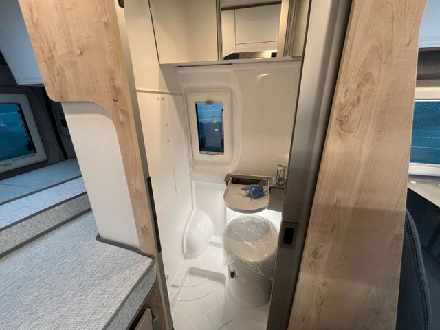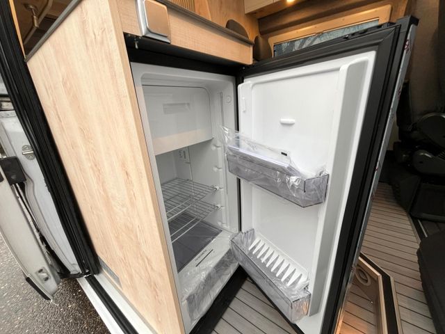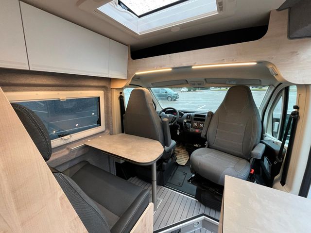 ABS, ESP und ASR, Alufelgen 16" schwarz, DAB Antenne und Radiovorbereitung, Klima manuell, Lederlenkrad & Schaltknauf, Spiegel elektrisch verstell-/beheizbar, Fahrer- und Beifahrerairbag, 90l Kraftstofftank, Chairmansitze im Fahrerhaus inkl. Drehkonsole, 3.500kg Light Chassis, USB Anschluss im Armaturenbrett, Chromringe im Kombiinstrument, Multifunktionslenkrad und Tempomat, Getränkehalter & Smartphonefach, Vorbereitung für Rückfahrkamera, 16A Ladegerät, Ladebooster 25A, Lithium- Aufbaubatterie mit 100Ah, Truma Inet X Bedienteil, Heizung Truma C4 Gas, LED Außenlichtleiste, Trittstufe elektrisch, Sitzbezug Stoff grau, Hochfeste Tisch- und Arbeitsplatte aus HPL, Dachhaube 70x50cm vorne, Dachhaube 40x40cm hinten, 5 Seitz Rahmenfenster, Schiebetür Fliegenschutztür, Rollo Verdunkelung Fahrerhaus, Steckdosen 2x 230V, 1x USB, 1x12V, Kompressorkühlschrank, Softtouch Wandverkleidung im Heckbereich (ausg. Vario Kids), Durchgehende Hecktürverkleidung, Ablagefächer in Schiebe- und Hecktür