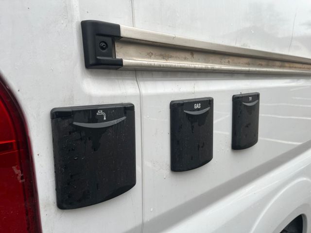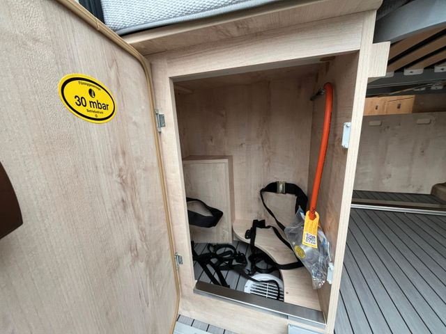 3. Bett für die Seriensitzbank vorne, Isofix an Sitzbank rechts und links, 1 Touch Lampe zusätzlich beim Tisch, Steckdosensatz außen (TV, 220V,Gas), Außendusche
