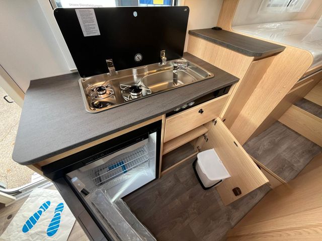 Liegefläche Einzelbetten (cm)200 x 70 / 195 x 80, Kühlschrank (l)78 (11), Frischwassertankkapazität gesamt / Frischwassertank bei Fahrbefüllung (l)116 / 20, Abwassertank (l)92, Heizung TypCombi 4 Gas, Stauraum für Gasflaschen (Füllgewicht in kg)2 x 11kg