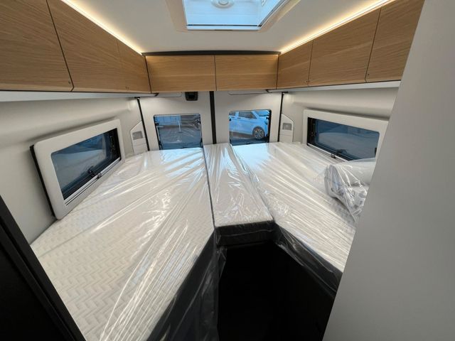 Ablastung auf 3.500Kg, Kühlschrank 138l statt 84l, Zuziehhilfe Schiebetüre, Sonnenschutz-Markise, Windschutzscheibe beheizbar, Fußboden-Temperierung elektrisch