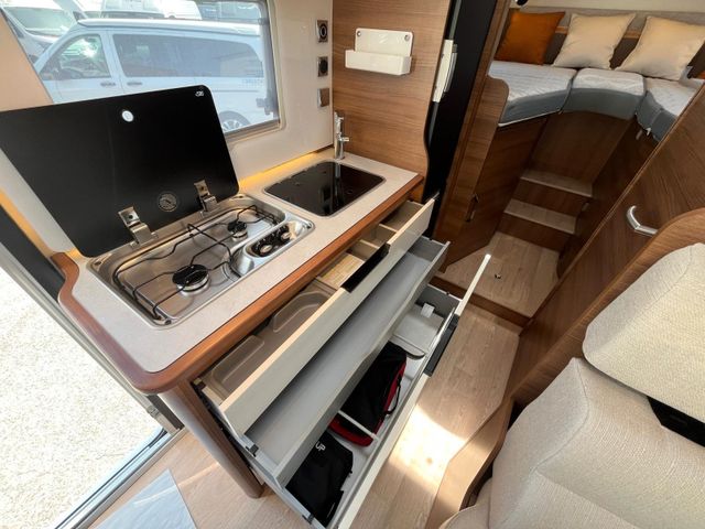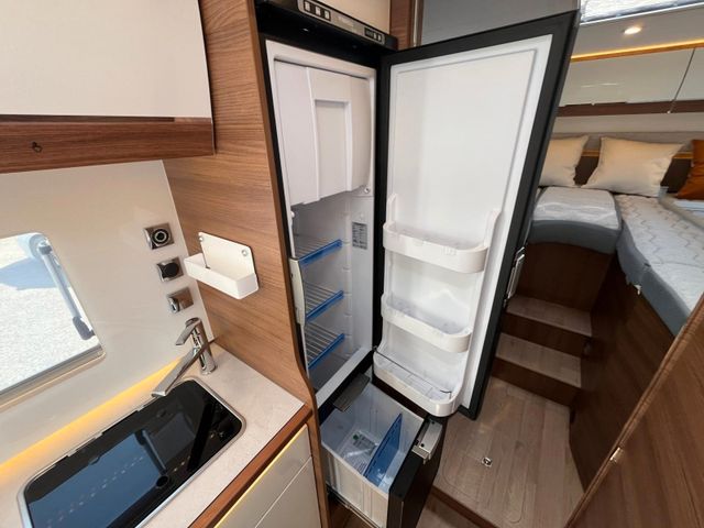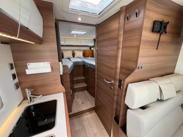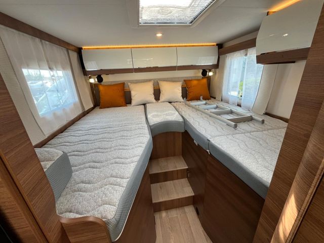 180 PS Automatik-Getriebe 3,5T, Polster Bilbao, Heizung Truma 6EH Diesel + Elektro, Bodenheizung im Wohnraum (230V), Außendusche Warm/Kalt regelbar, LED 100% Scheinwerfer, Außenspiegel mit Doppelsichtfeld, Abwassertankheizung, Audio Symphonie, Komfortstützen am Heck