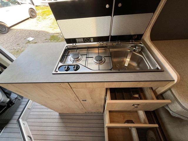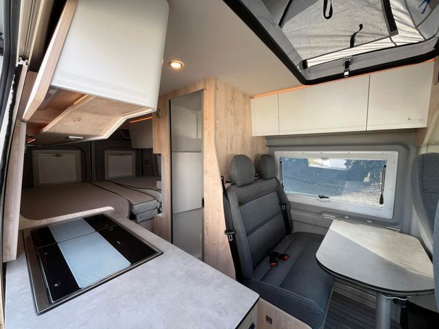 Citroen 35 Light 2,2HDI 140PS 6-Gang Schaltgetriebe, Eis-Weiß, Sitzbezug Serie, Aufstelldach weiß, Seitz S4 Rahmenfenster schiebbar HR, Seitz D Lux Rahmenfenster ausstellbar HL, Isofixvorrichtung an Standardsitzbank rechts + links, Schublade unter Sitzbank, Einlegeboden Duschtasse, Lithium-Batterie 200AH statt 100AH, Truma C6 Gas + Elektro, Ambiente-Beleuchtung, 3er-Satz Steckdosen (USB, 12V, 220V) hinten über Bett links, Steckdosensatz außen (TV, Gas, 220V), Zuziehhilfe Schiebetür